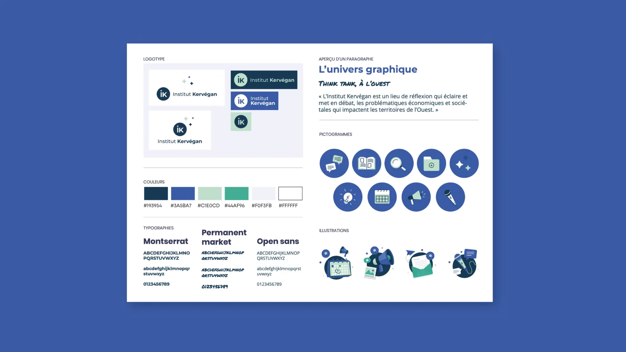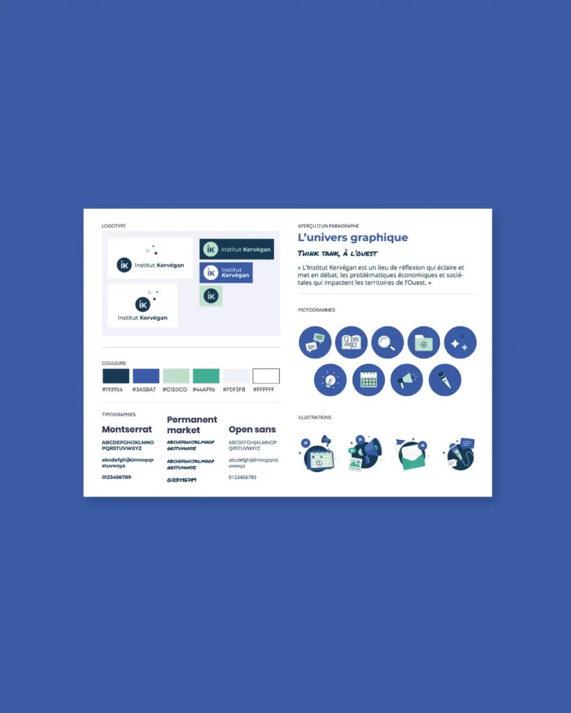 L’institut Kervégan est un institut de réflexions, basé à Nantes, en lien avec le territoire. L’objectif du projet est de moderniser la charte existante tout en faisant ressortir les valeurs : du sérieux mais pas de rigidité, du dynamisme et de l’effervescence dans les idées et actions proposées.