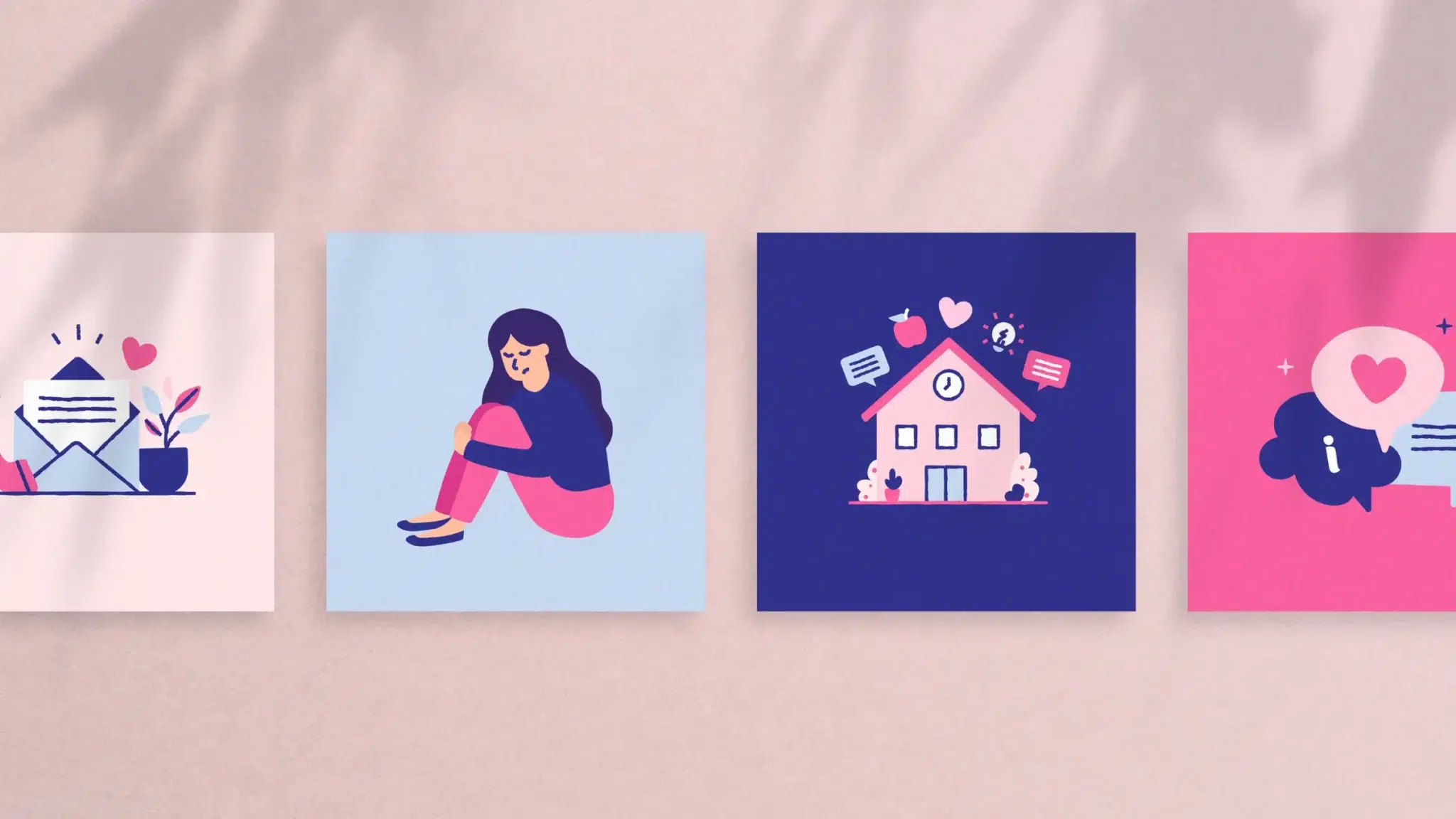 Des illustrations sensibles et poétiques ont été créées pour humaniser le message et le rendre accessible. Elles apportent une touche de douceur qui contraste avec la gravité du sujet, tout en soutenant la lecture de la plaquette.