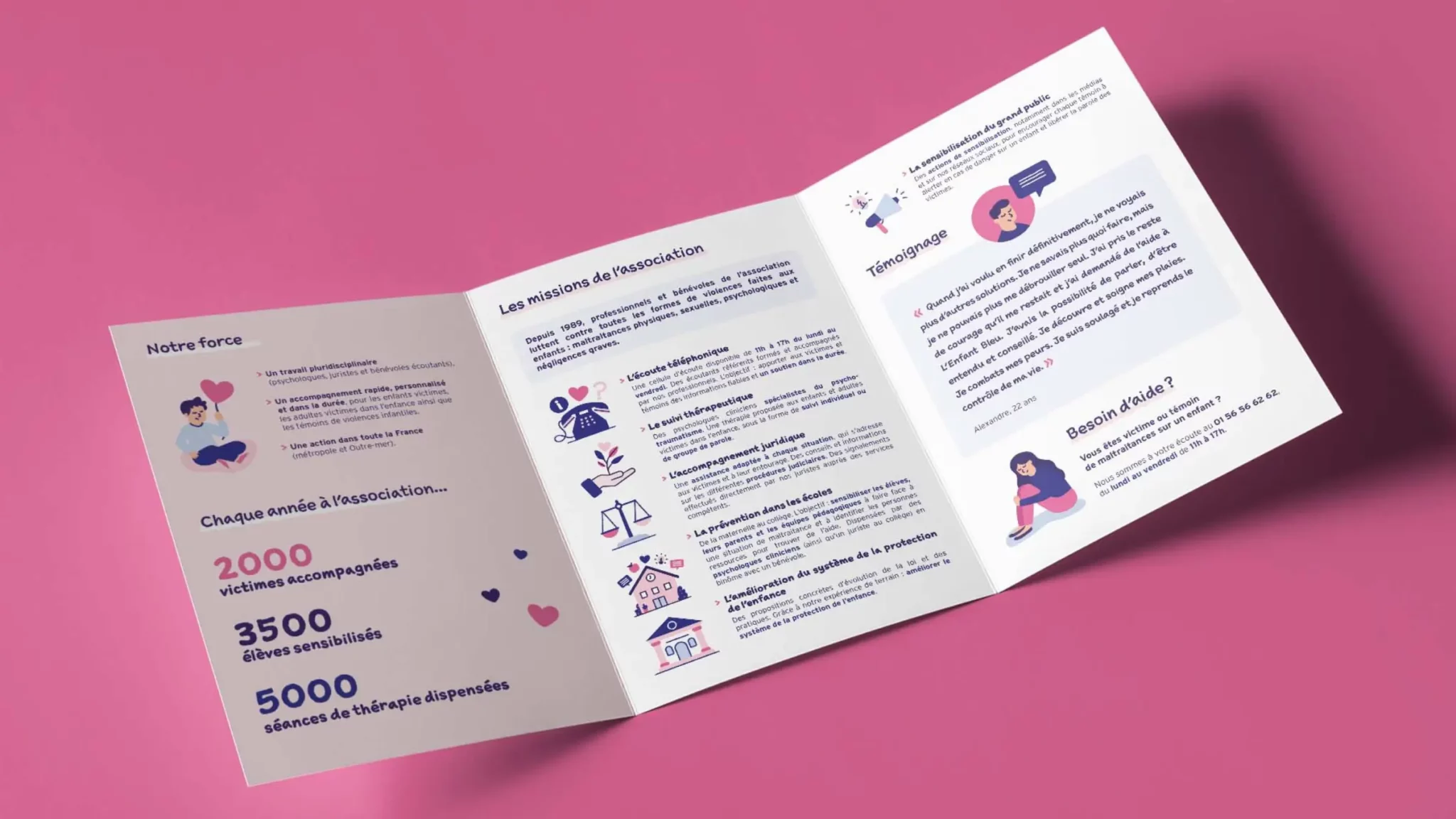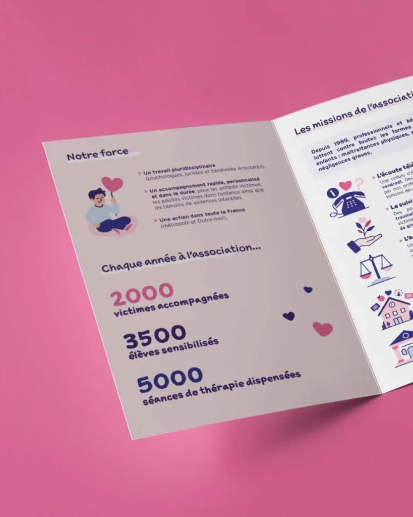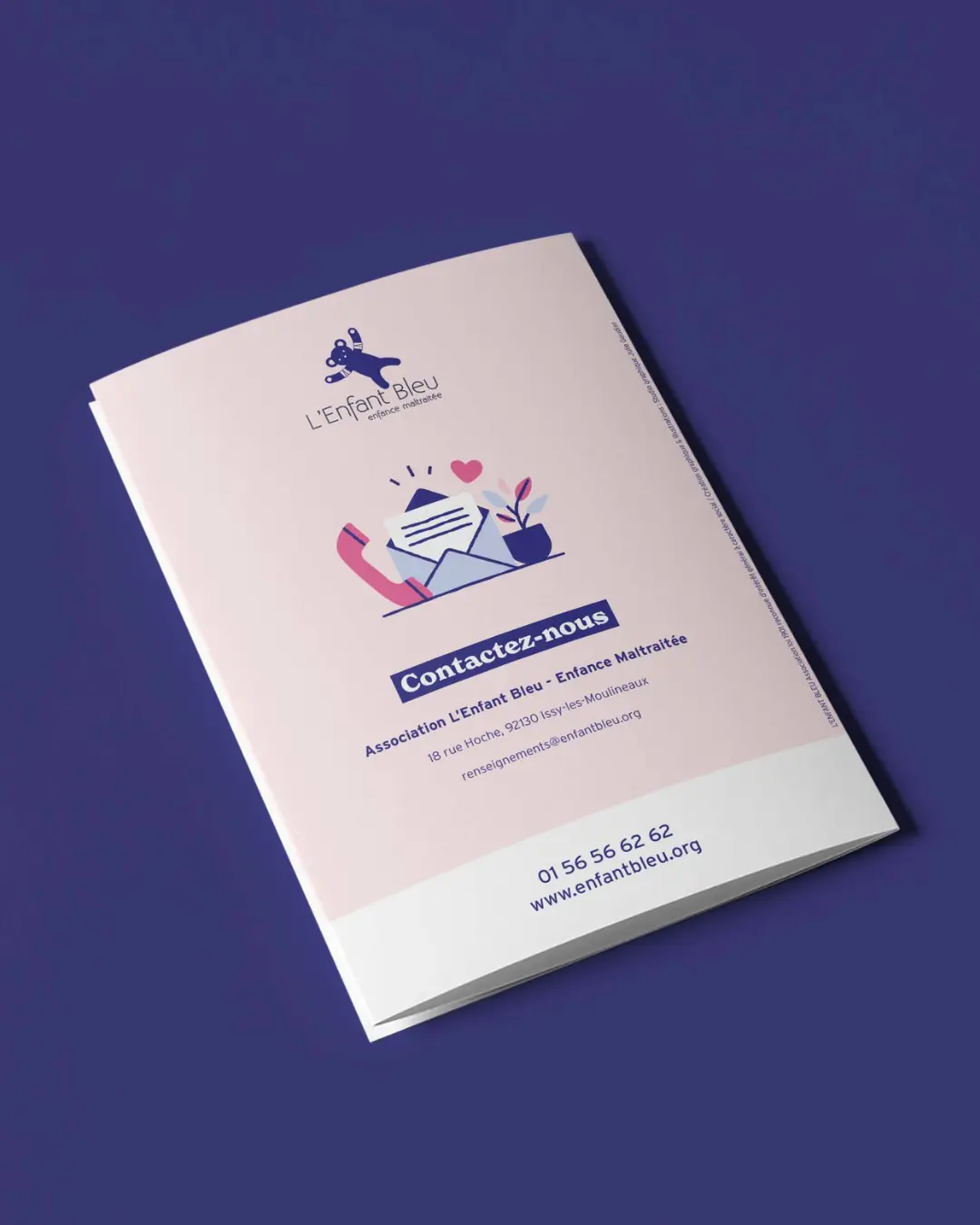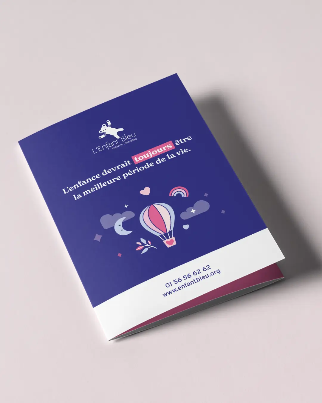 L’association L’Enfant Bleu m’a confié la création d’un dépliant destiné à présenter ses missions et ses valeurs autour de la protection de l’enfance, accompagné d’illustrations sur mesure.