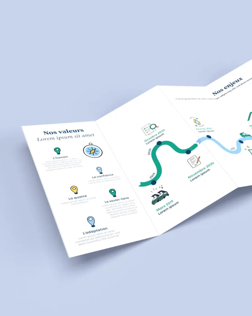 La mise en page hiérarchise les informations de façon claire et fluide, pour présenter les missions de l’association de manière impactante. Le format facilite la diffusion lors des événements et rendez-vous institutionnels.