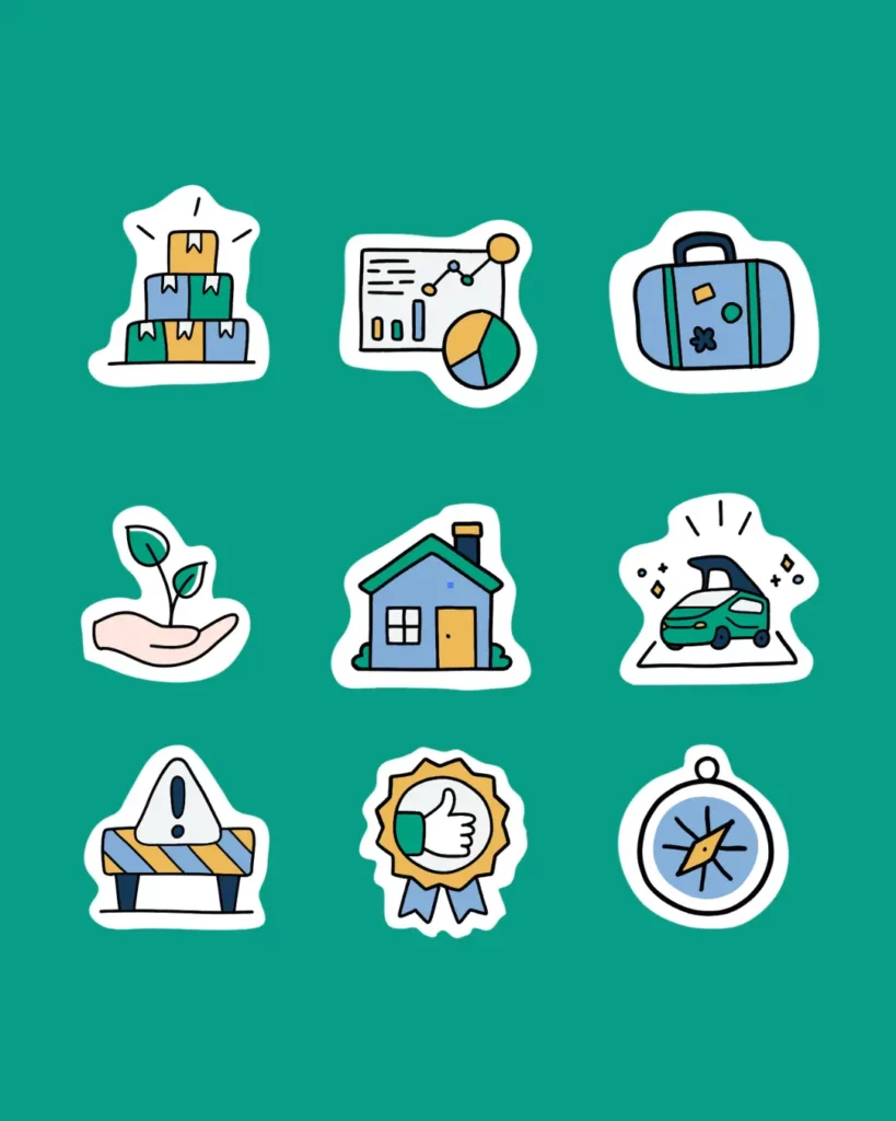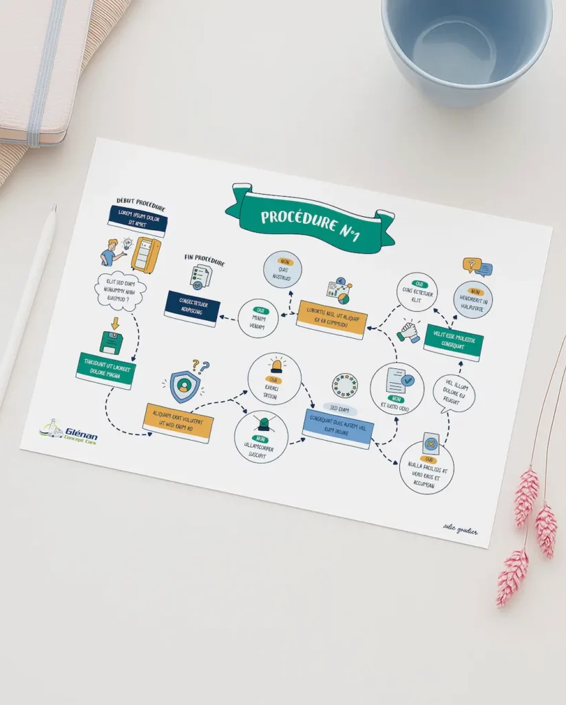 Des pictogrammes personnalisés prolongent l’identité visuelle sur le site web. Ils améliorent la lisibilité des contenus en ligne et assurent une cohérence entre supports print et digital.